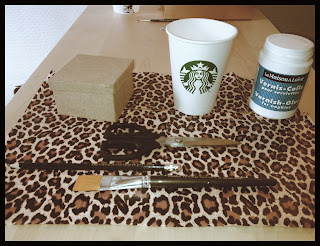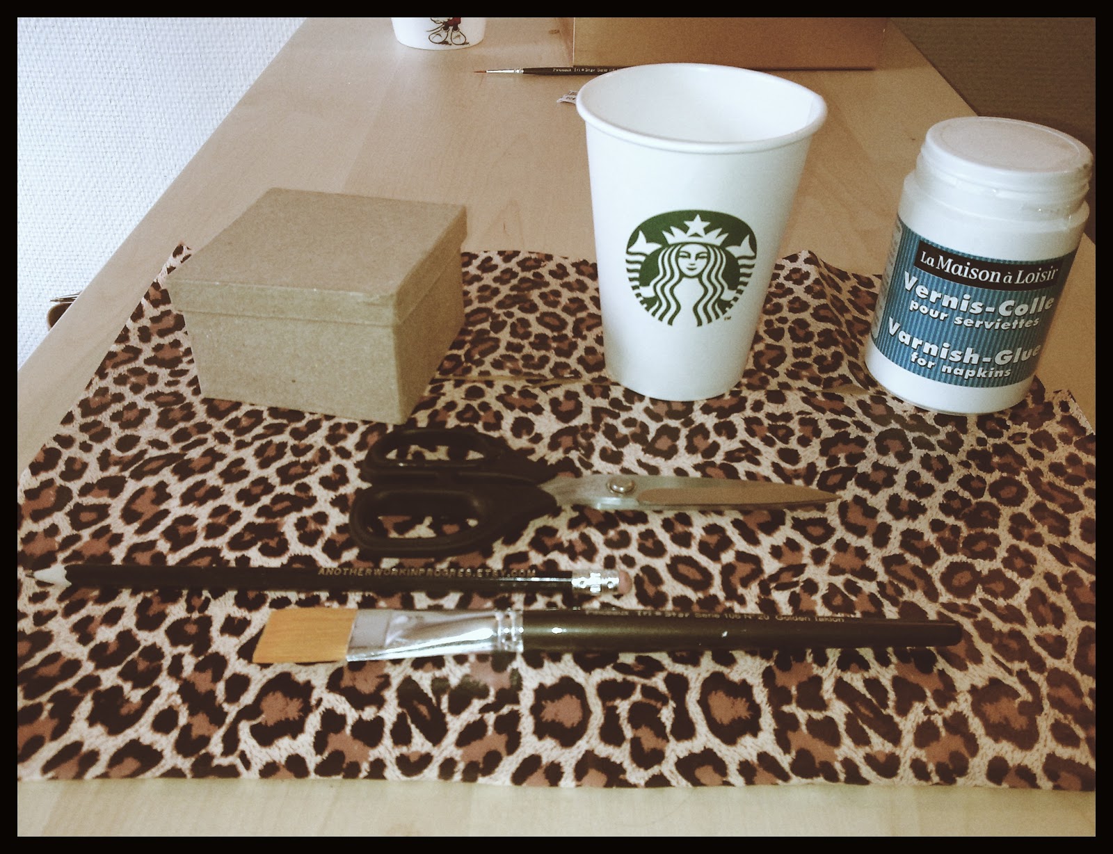 - objet que vous souhaitez customiser (j'ai choisi une petite boite en papier mâché achetée en magasin de loisirs créatifs et un gobelet Starbucks).