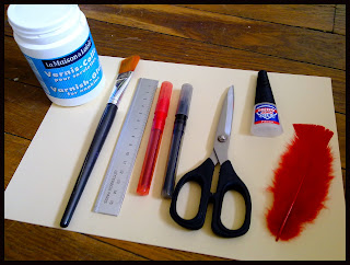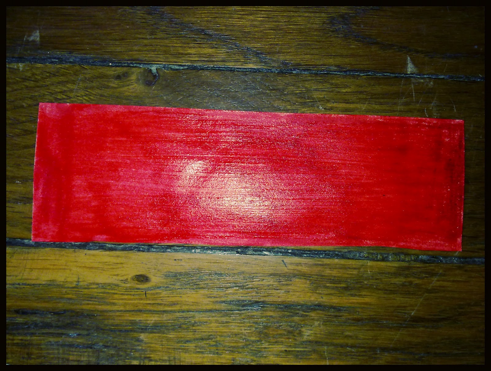 Commencez par découper dans la feuille cartonnée votre marque-page, puis coloriez une face en noir et l'autre face en rouge, puis passez une couche de vernis dessus :